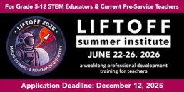 - If you are currently a 5-12 grade STEM educator, CTE instructor, or pre-service teacher and have never attended LiftOff Summer Institute before – APPLY HERE